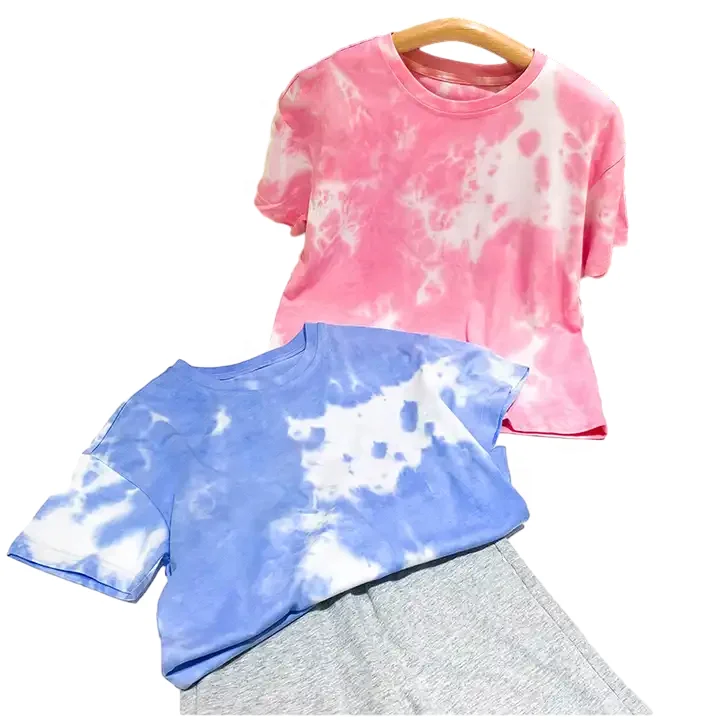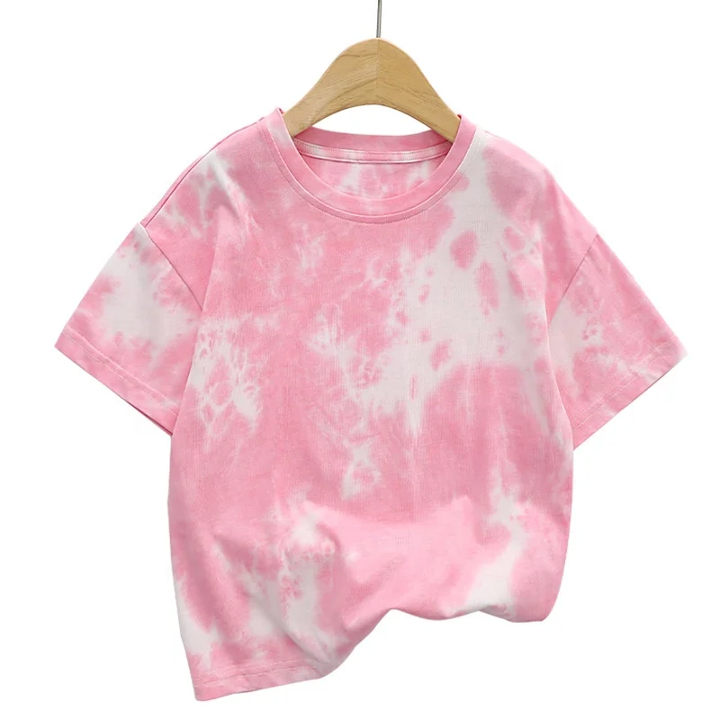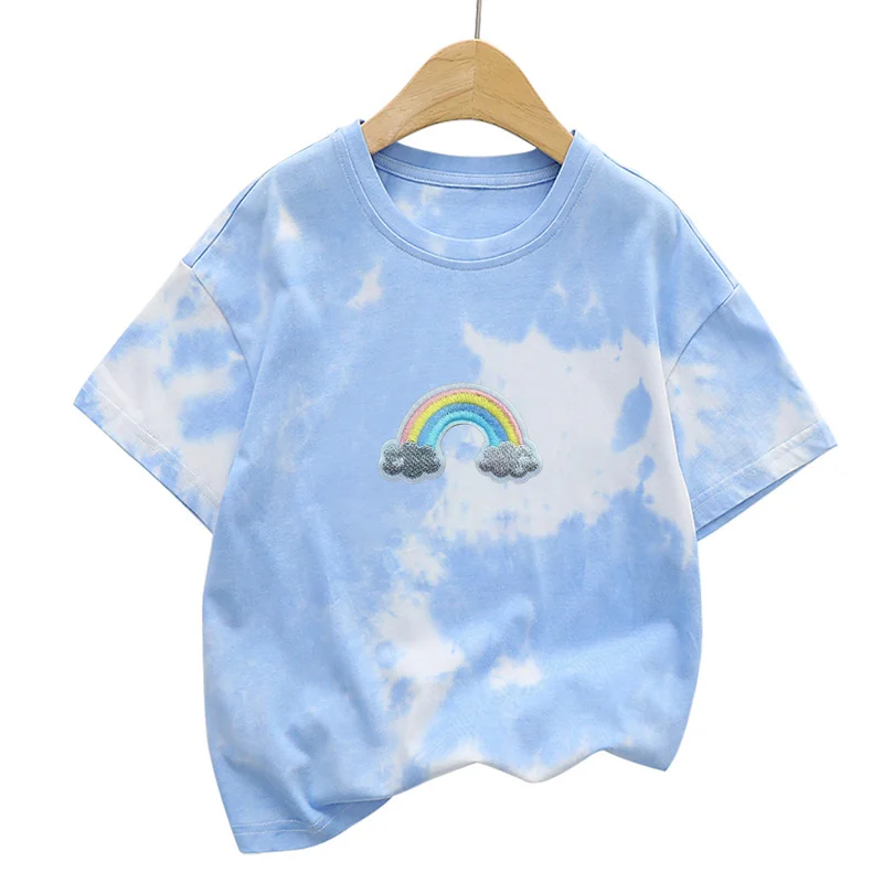 Pure Cotton Children's T-shirt Tie Dyed Trendy Rabbit Patch Kids Short Sleeve T-shirt for Boys and Girls